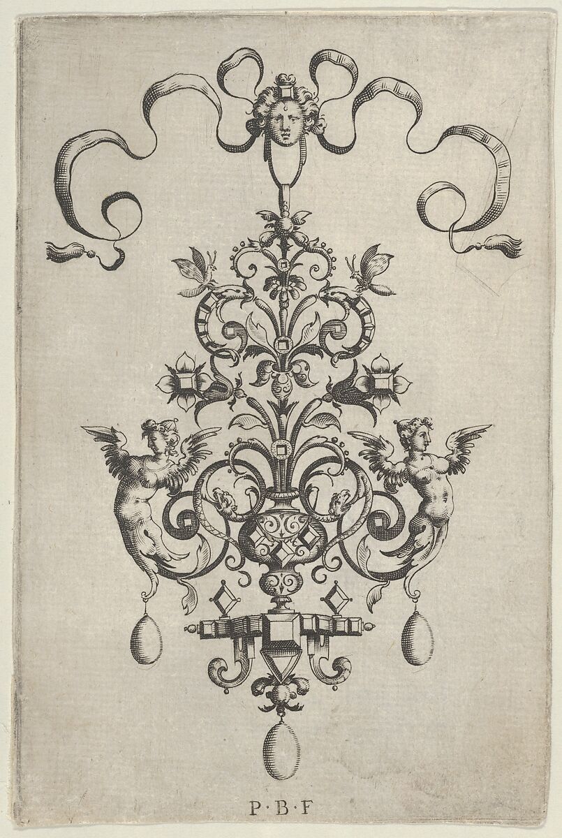 - Title: Vertical Panel with Design for a Pendant, from Ars His Myronis Nobilis Effingitus Pagellulis
