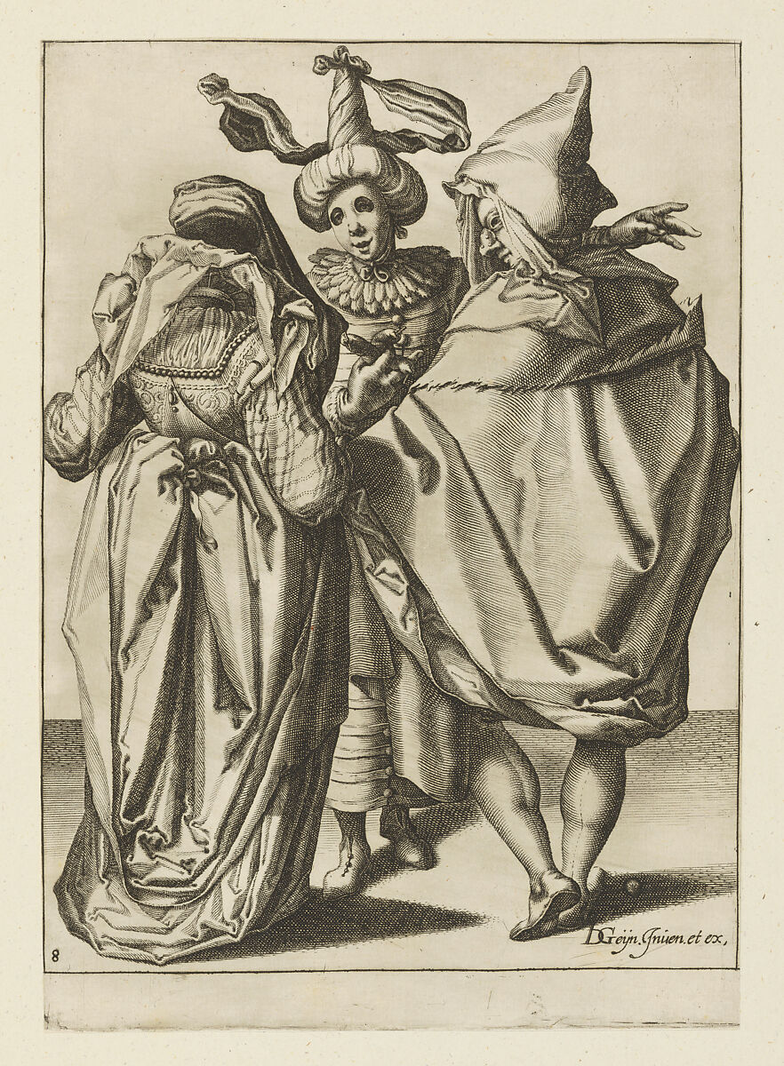 - Title: A Couple Addressing a Gesticulating Young Man, plate 8 from "The Masquerades"