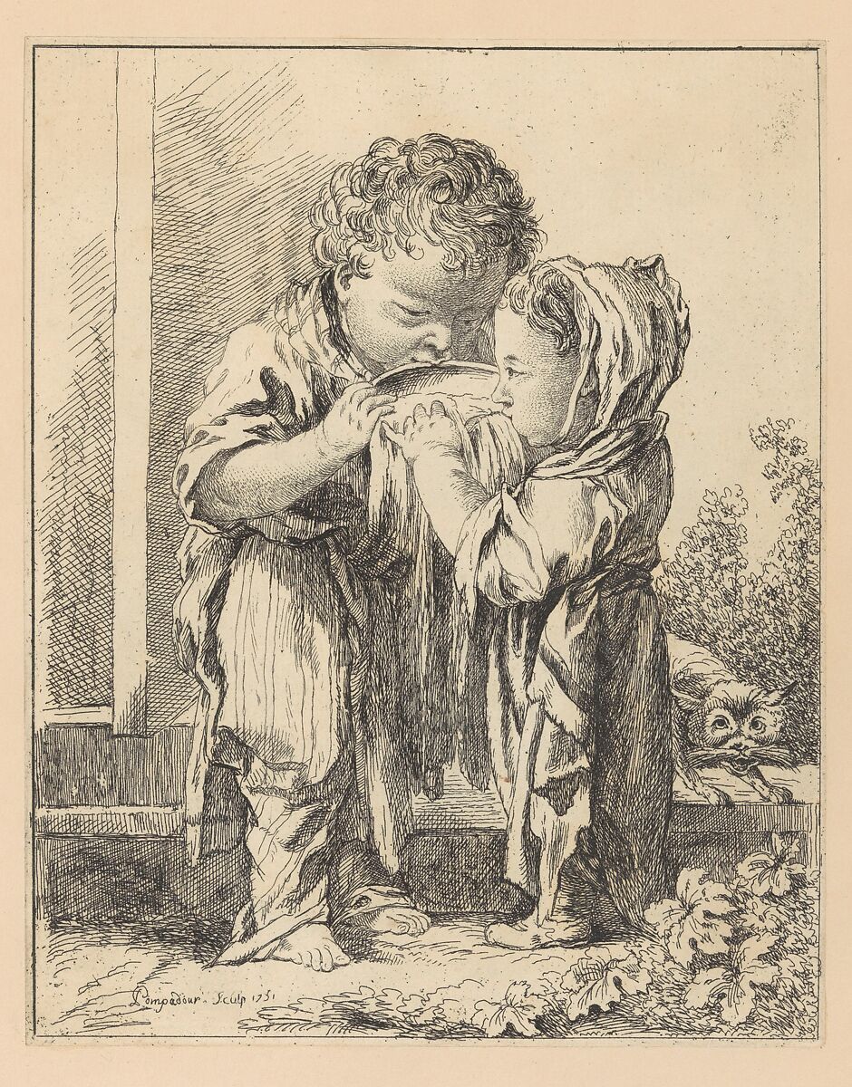 Les Petits Buveurs de lait (The Little Milk Drinkers), from Suite d'estampes gravées par madame la marquise de Pompadour d'après les pierres gravées de Guay, graveur du Roi