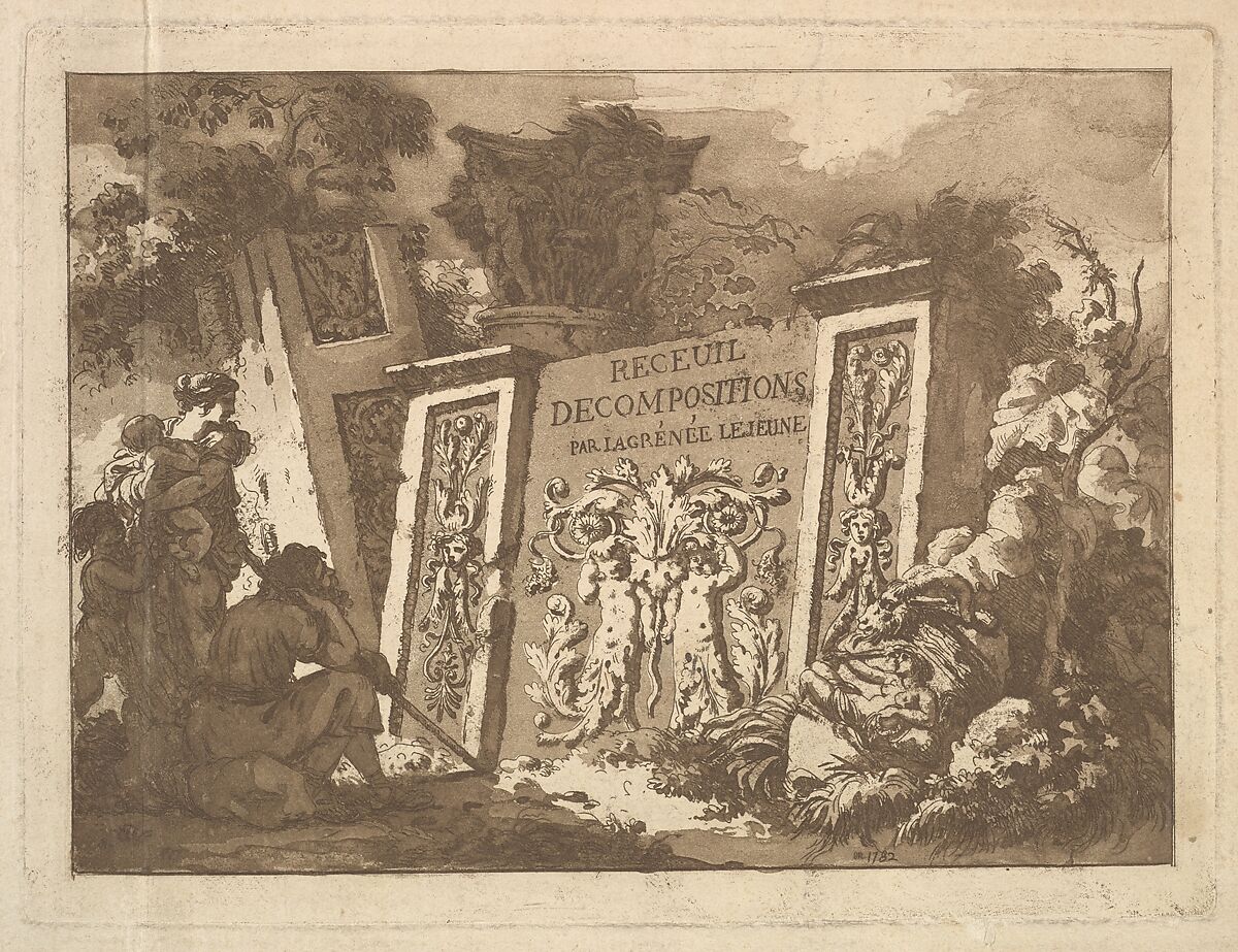 - Title: Frontispiece, from "Recueil de Compositions par Lagrenée Le Jeune" (Collection of Compositions by Lagrenée the Younger)