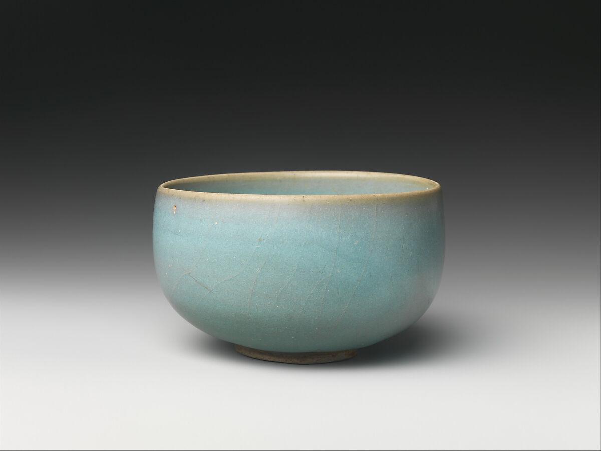 Kilns producing Jun ware, which were based in north China, are listed among the kilns that made wares for the court during the Northern Song dynasty (960–1127). The light blue color of the glaze on this elegant bowl typifies some of the finest Jun wares produced during this period.
