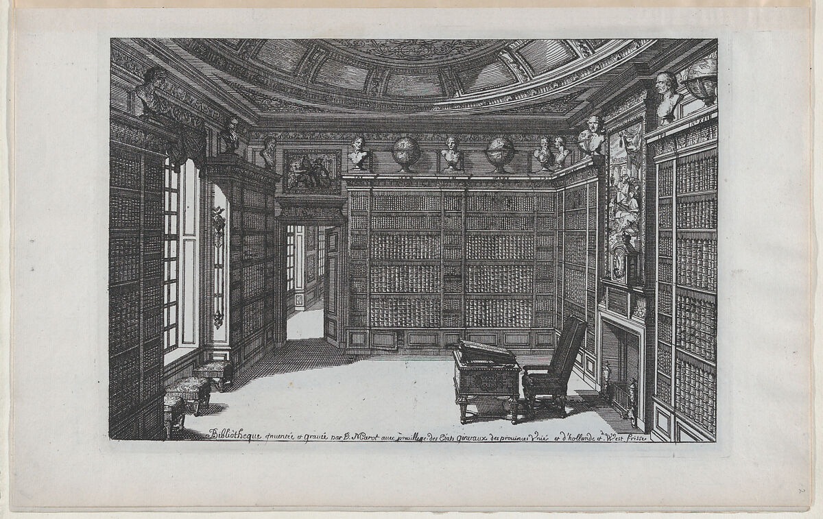 - Title: Interior of a Library, from Nouveaux Liure da Partements, part of Œuvres du Sr. D. Marot