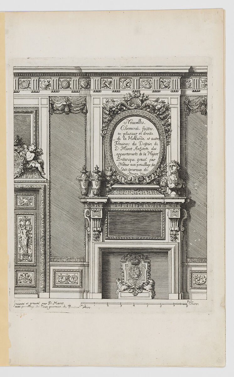 - Title: Title Plate with Design for a Chimney, from Nouvelles Cheminées Faittes en Plusieur en Droits de la Hollande et Autres Prouinces, part of Œuvres du Sr. D. Marot