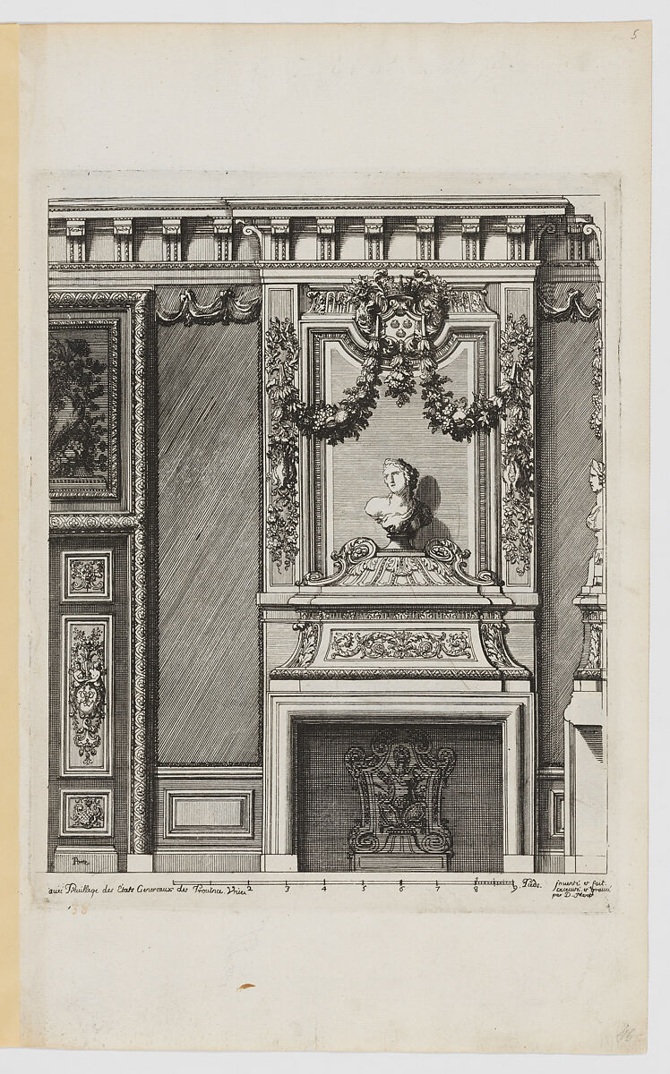 - Title: Chimney-Piece with a Bust on the Overmantel, from Nouvelles Cheminées Faittes en Plusieur en Droits de la Hollande et Autres Prouinces, part of Œuvres du Sr. D. Marot