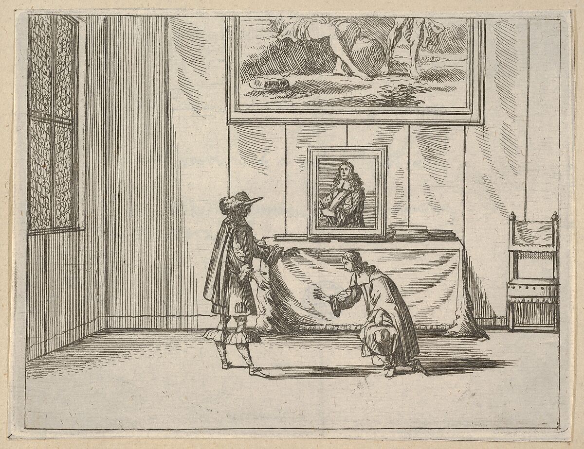 This print is from L'Idea di un Principe ed Eroe Cristiano in Francesco I d'Este, di Modena e Reggio Duca VIII [...] collected in an album of brown boards. Four prints are hinged on each page of the album with a seventeenth- or eighteenth-century inscription pasted beneath the print on the album page. The prints are etched in the manner of Callot and illustrate Francesco I d'Este's virtuous nature as a ruler in battle, in religious matters, and in daily life. Three of the prints are signed by Jean Sauvé, who presumably worked with Fenice on the execution of the illustrations for this book. There are sixty-seven copper plates and forty-five preparatory drawings in the Museo Civico di Modena.
