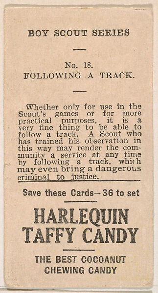 - Title: Example of Card Verso, from the Boy Scouts series (E41), issued to promote Harlequin Taffy Candy