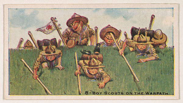 - Title: Card 8, Boy Scouts on the Warpath, from the Boy Scouts series (E41), issued by the Scout Gum Company or to promote Harlequin Taffy Candy