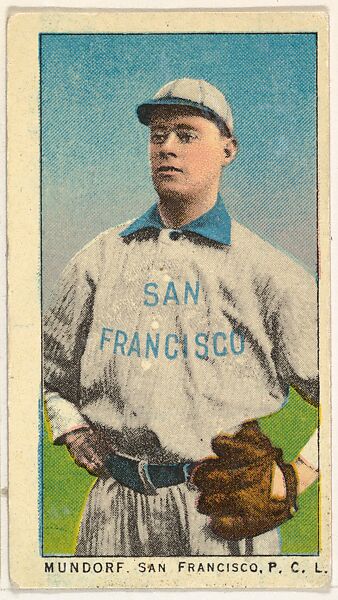 - Title: Mundorf, San Francisco, Pacific Coast League, from the "Obak Baseball Players" set (T212), issued by the American Tobacco Company to promote Obak Mouthpiece Cigarettes