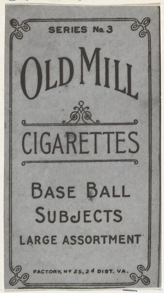 - Title: Facsimile of Card Verso, from the Baseball Players (Red Borders) series (T210) issued by Old Mill Cigarettes