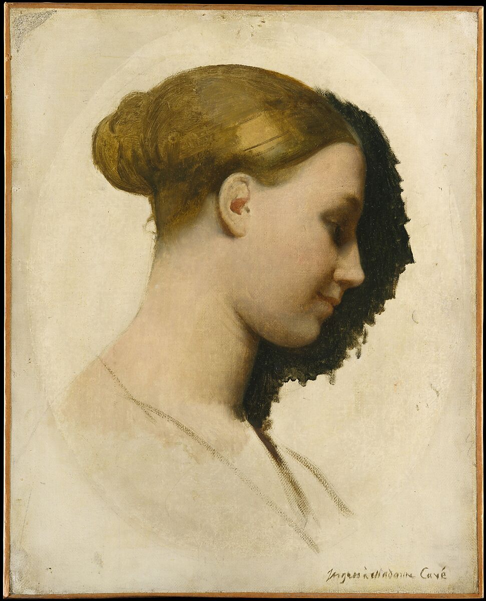 The sitter was an artist who exhibited regularly at the Salon and was also the author of popular drawing manuals. At the time Ingres painted her, she was married to one of his pupils, Clément Boulanger (1805–1842). Traces of a curving edge on the surface of the canvas indicate that the portrait had been framed as an oval before Ingres added the dedication to her as Madame Cavé, which must have taken place a decade later, after she remarried. Ingres’s 1844 portrait of Monsieur Cavé (43.85.2) was conceived as a pendant to the present work.