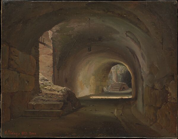 Diday focused his attention on transitions of light and shadow in this arched passage, which was depicted by a number of artists in the early nineteenth century. The painter is said to have exhibited many studies executed in Italy following his sojourn of 1824–25. The present example may have been included in an exhibition held at Galerie Lebrun, Paris, in 1826, the year after it was painted.