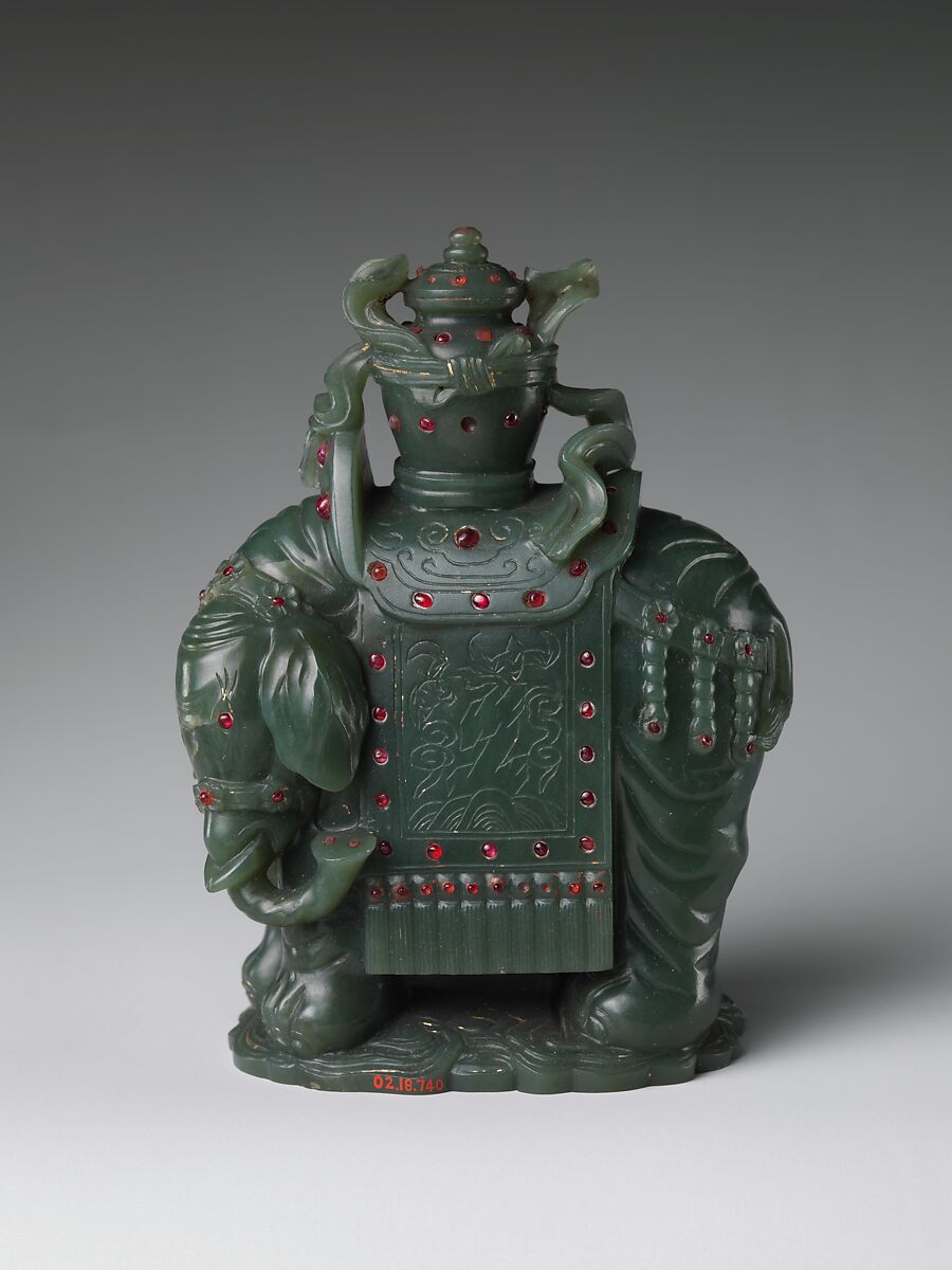 - 清中期 碧玉嵌寶象駝寶瓶