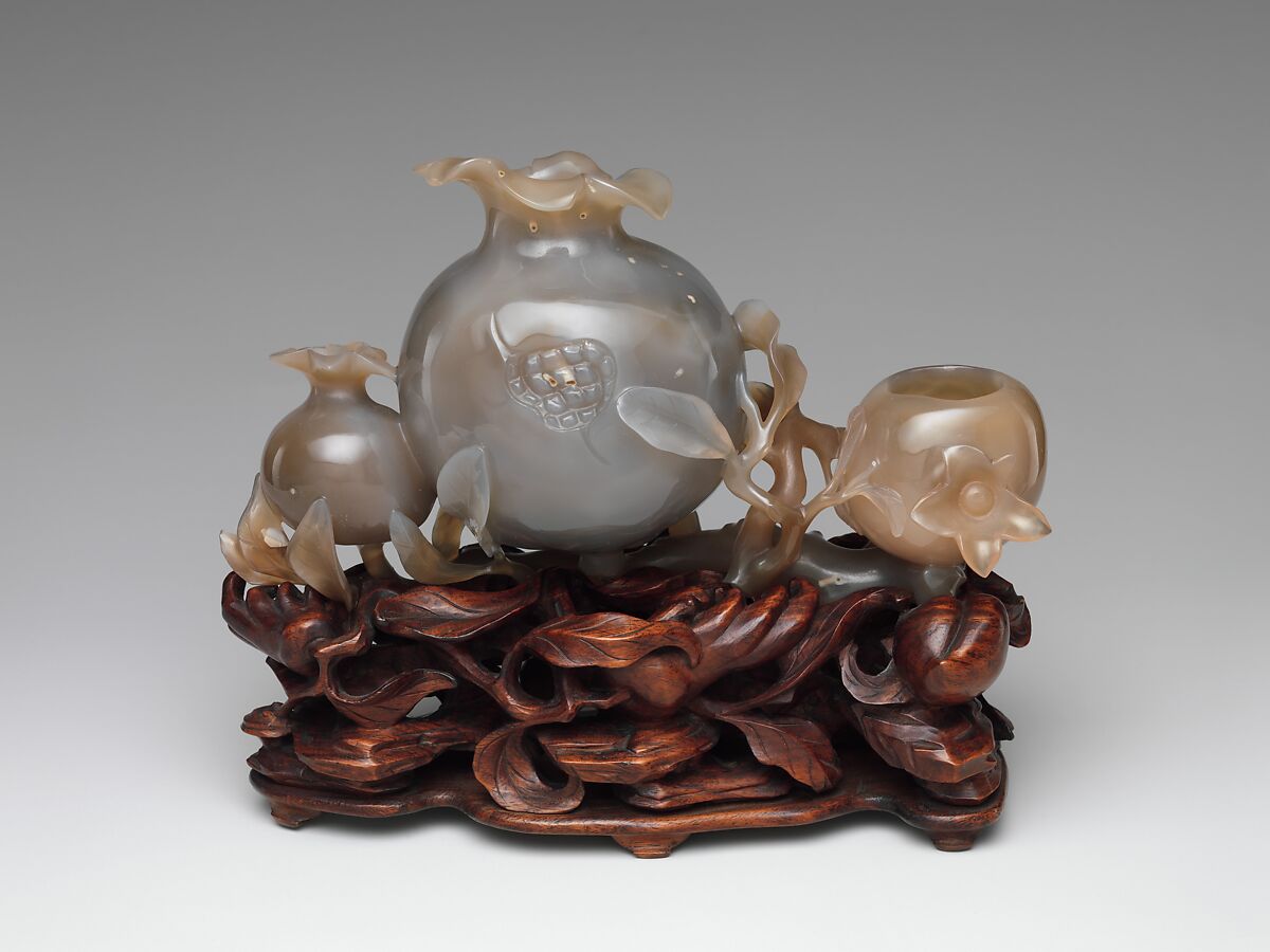 As the Chinese character for “seed” (zi) is the same as that for “son,” the many-seeded pomegranate is viewed as a symbol for having multiple sons who are expected to continue the family line. The use of puns and rebuses to express wishes for good fortune, longevity, prosperity, and even academic success has been a common theme in Chinese art.