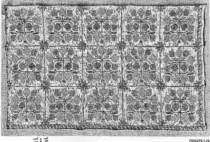 - Medium: Linen, silk, metal wrapped thread; plain weave, embroidered