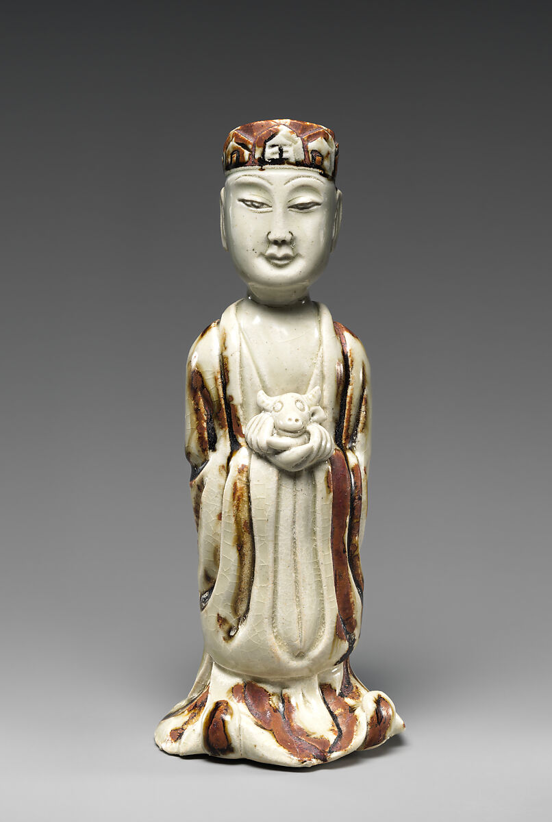 From the Tang dynasty onward, zodiac animals were routinely given human attributes. Here, the figure is envisioned as a Daoist deity holding the head of an ox. The large Chinese character wang (king) on the front of his hat signifies his heavenly identity.