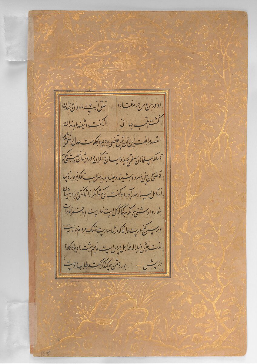 - Title: Page of Calligraphy from an Anthology of Poetry by Sa`di and Hafiz
