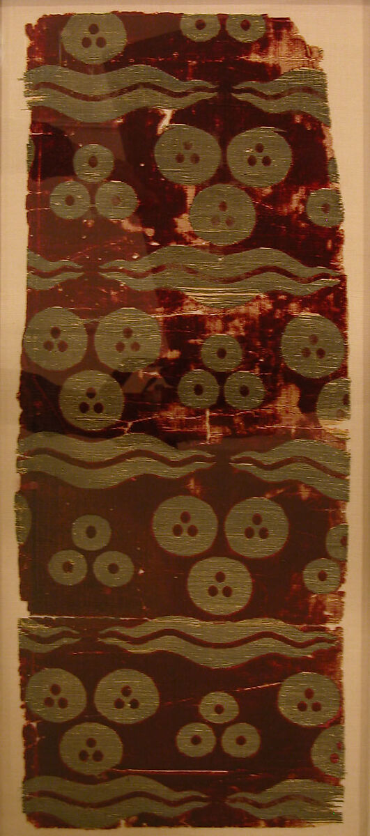 - Title: Silk Velvet Fragment with Tiger-Stripe and 'Cintamani' Design
