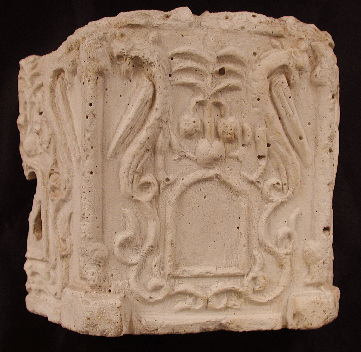 Fragment of a Base with Pair of Peacocks flanking a Palm Motif