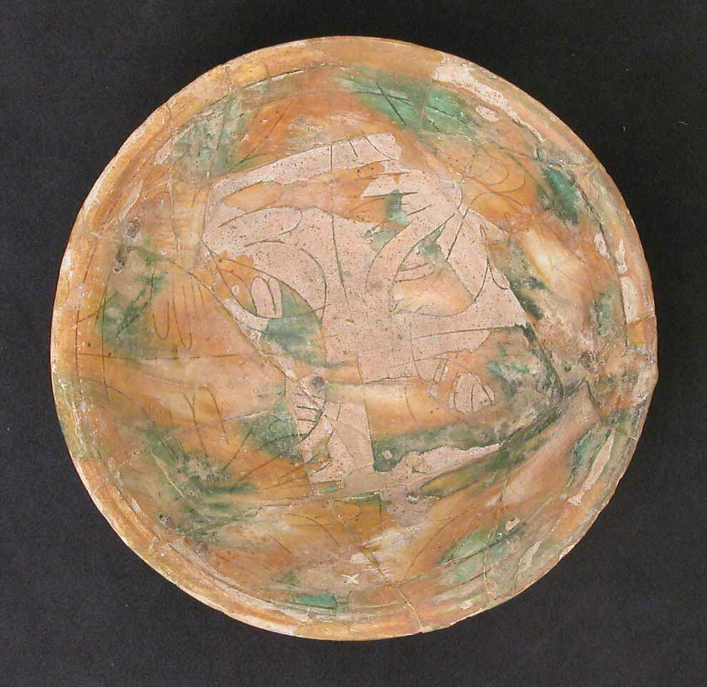 This ceramic bowl was excavated a Qasr-i Abu Nasr, an archaeological site now attached to modern Shiraz in southern Iran. The small town and fortress were located at a strategic point at the intersection of protective mountains, water sources, and along roads entering the plain. The site was occupied, at least intermittently, from the Parthian period (3rd century B.C.–3rd century A.D.) to the Muzaffarid period (13th–14th century A.D.). The major occupation, including the extensive fortress, dates to the Late Sasanian period (6th–7th century A.D.).