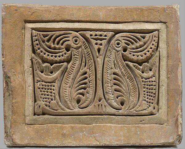 This cast was taken from a rectangular panel excavated at Nishapur from a mound known as Sabz Pushan (the Green Covered). Excavations at Sabz Pushan revealed part of a residential neighborhood with several houses and an alleyway. This piece was found in an iwan, or covered room opening onto a courtyard, richly decorated with carved panels and wall paintings. This iwan may have been part of a private house, but the presence of a mihrab (prayer niche) suggests that it could have also served as a small neighborhood mosque. Other carved panels found in the same iwan include MMA 37.40.40, 37.40.45, 37.40.46 and 37.40.47.