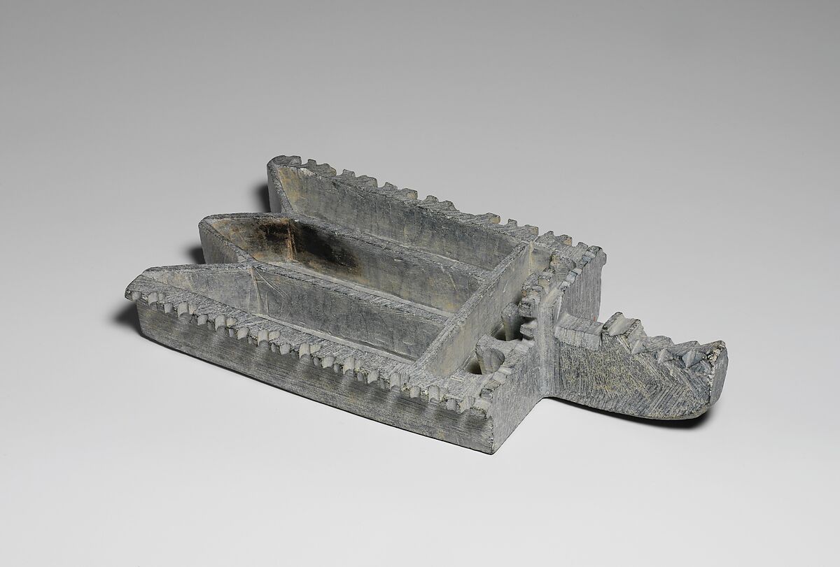 This stone lamp’s design accommodated several wicks, and its curved handle made it easier to carry.