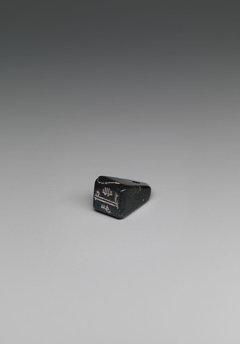 Inscribed seals, used to validate documents or goods, were often worn on a string or chain. Some examples, whose inscriptions invoke God and no personal name, are believed to have doubled as talismans to provide protection to their bearers (although it has been argued that the religious formulas would have had no power until they were stamped and could be read forwards). Depending on the reading of this seal's inscription, it could fall into either category. One suggestion is that it is a common abbreviation of the phrase, "Rely on God;" another is that it reads, "Ali trusts in God", implying that the seal's owner was a man named 'Ali, or that he was Shi'i.