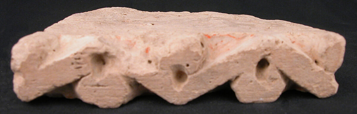 As part of the larger "Persian Expedition" project at Nishapur, American archaeologists and hundreds of Iranian workers excavated a mound named Tepe Madrasa. There, they uncovered an architectural complex which they tentatively associated with a palace or governmental center because of the solidity of the built structures and the extent and variety of wall decorations (including carved and painted brickwork, glazed tiles, wall paintings, and carved and painted stuccoes). This, together with the ceramic and metal finds, aided in attributing the site to the ninth or tenth century onwards. A mosque, refurbished multiple times up to the late eleventh century, was also unearthed, yielding the remains of a monumental entrance with a large terracotta inscription bearing the titles of a sultan (39.40.58, .60–64). Several twelfth century tombstones were also unearthed, showing the shift in purpose of what was earlier a residential area.