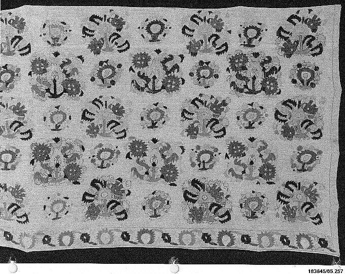 - Medium: Linen; embroidered in silk