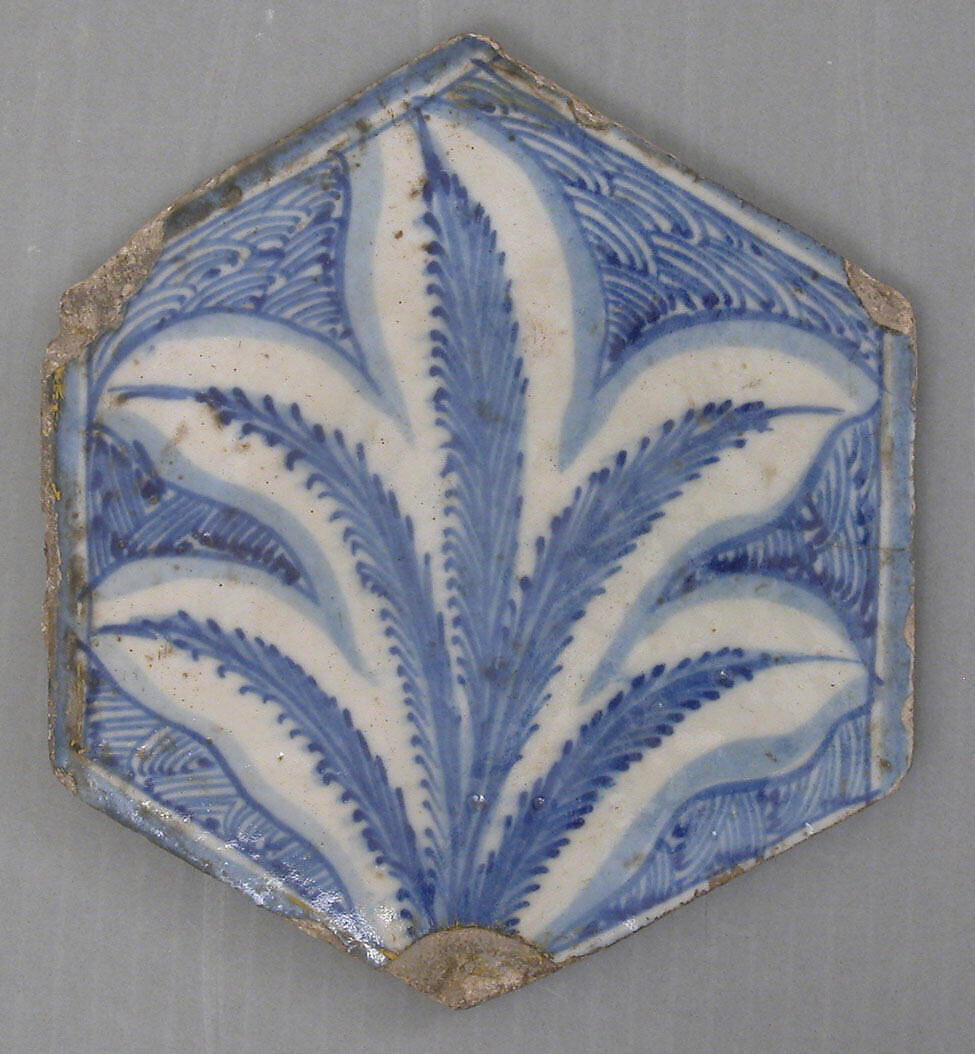 The design of this tile was strongly influenced by Chinese models, in both composition and color. The Egyptian taste for blue-and-white botanical designs was filtered through Iranian versions from the Ilkhanid period (1256–1353). It is known that Iranian artists moved westward at the beginning of the fifteenth century.
