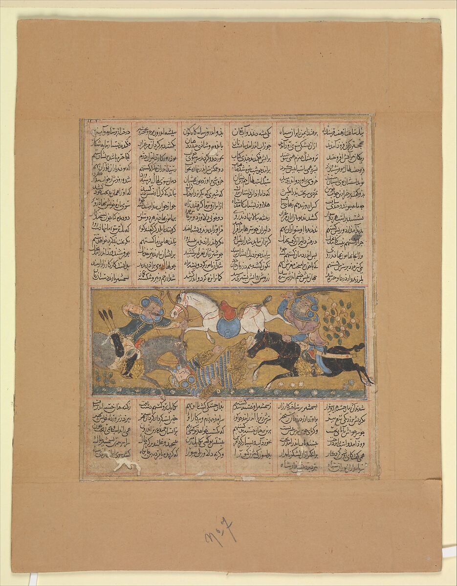 - Title: "Gustaham Kills Lahhak and Farshidvard", Folio from a Shahnama (Book of Kings)