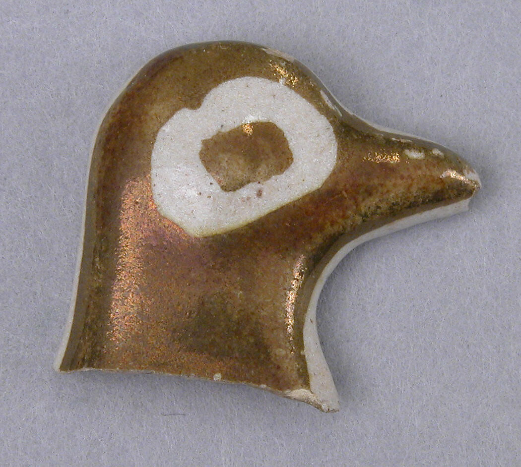 The original use of this rare object – a bird in profile painted on both sides – is unknown. Vessels painted with the same technique, luster, are more common and are distinctive of ninth and tenth - century Iraqi productions. They responded to the desire for both luxurious and wonder-inducing objects and open a window into the cosmopolitan sophistication of Abbasid material culture.