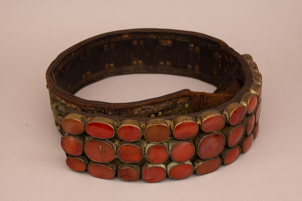 - Medium: Leather, brass, carnelian
