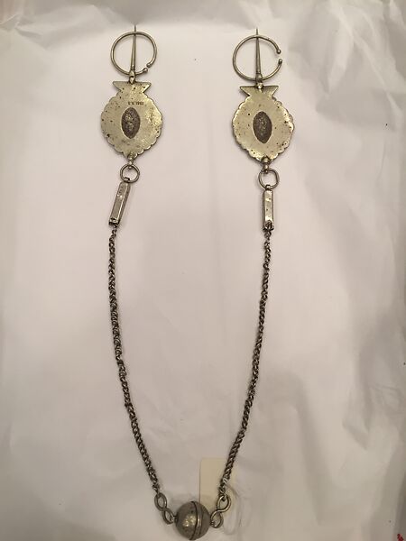 Two fibulae and a ball pendant make up this pectoral ornament that would have been worn by an Amazigh (Berber) woman in Morocco. It would have been included in an ensemble ithat consisted of head and ear ornaments, bracelets, rings, and other jewelry.