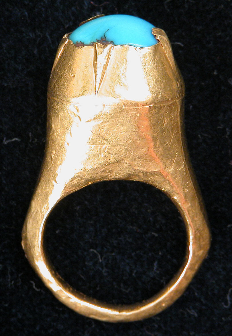 - Medium: Gold; chased and set with turquoise