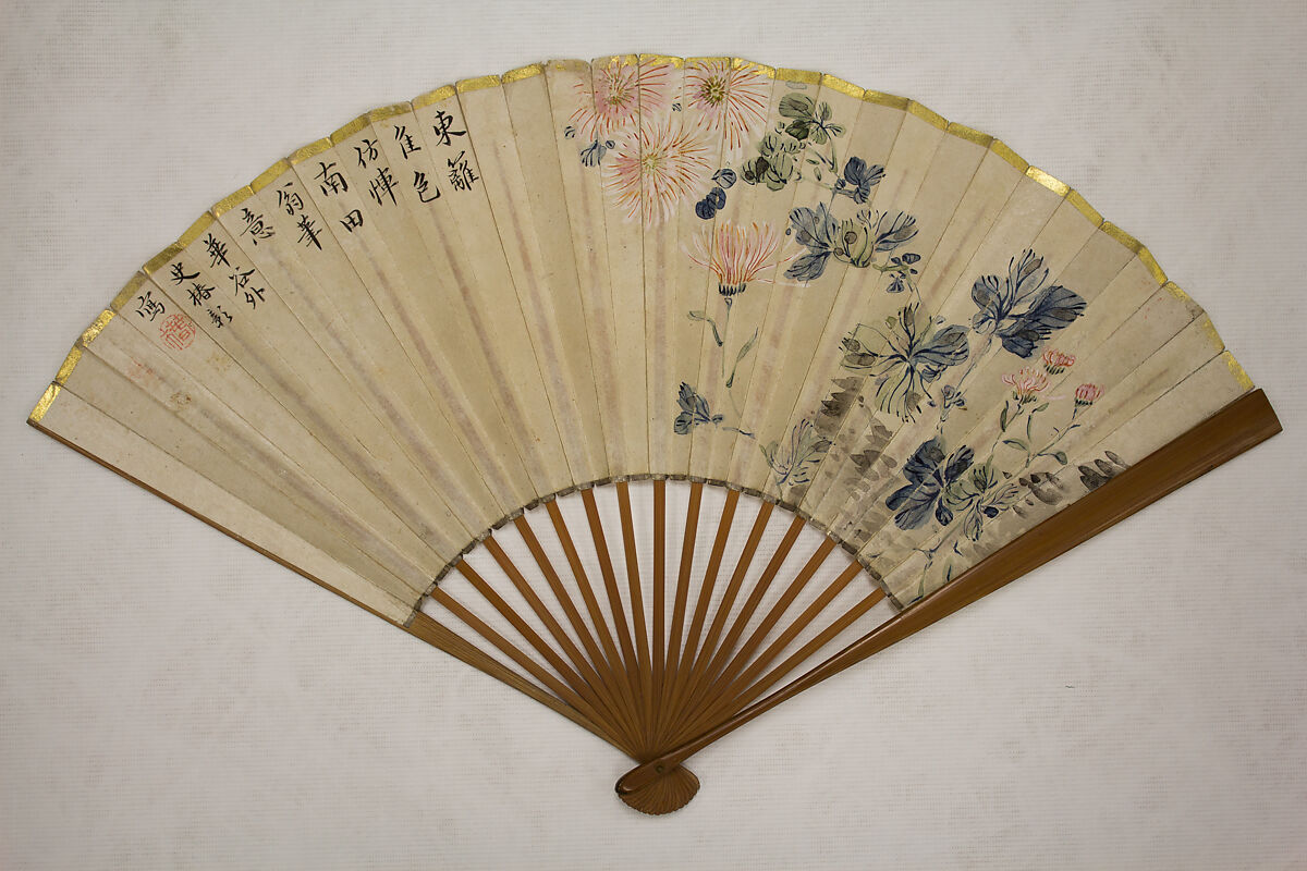 The inscription by the artist Kakoku on this charming painting states that he painted it in homage to a painting of the same subject by the Qing Chinese artist Yun Shouping (1633–1690). Beloved by generations of poets and painters in China, the chrysanthemums that grew at the eastern fence of the garden belonging to the poet Tao Yuanming (365–427) had a special resonance among Japanese literati. The son and student of Chinzan, who was a leading pupil of the realist painter Watanabe Kazan (1793–1841), Kakoku died quite young, leaving only a small number of works.