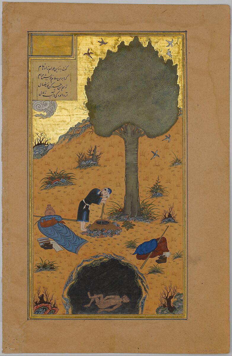 - Title: "How a Braggart was Drowned in a Well", Folio 33v from a Haft Paikar (Seven Portraits) of the Khamsa (Quintet) of Nizami of Ganja