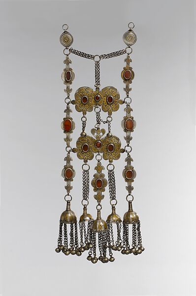 - Medium:Silver, fire gilded applique decoration, silver link chains and semi-spherical and spherical bells.