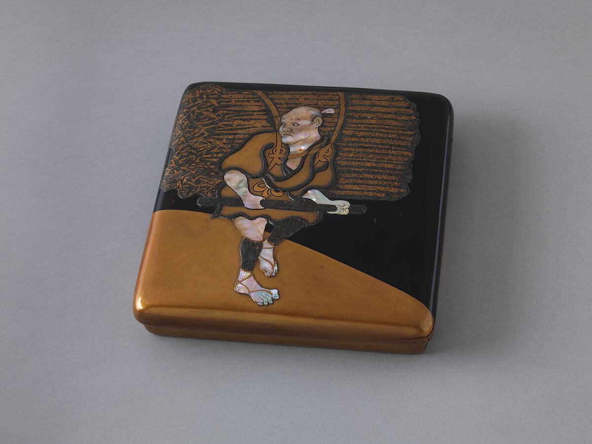 - Medium: Black and gold lacquer on wood with mother-of-pearl and pewter inlay