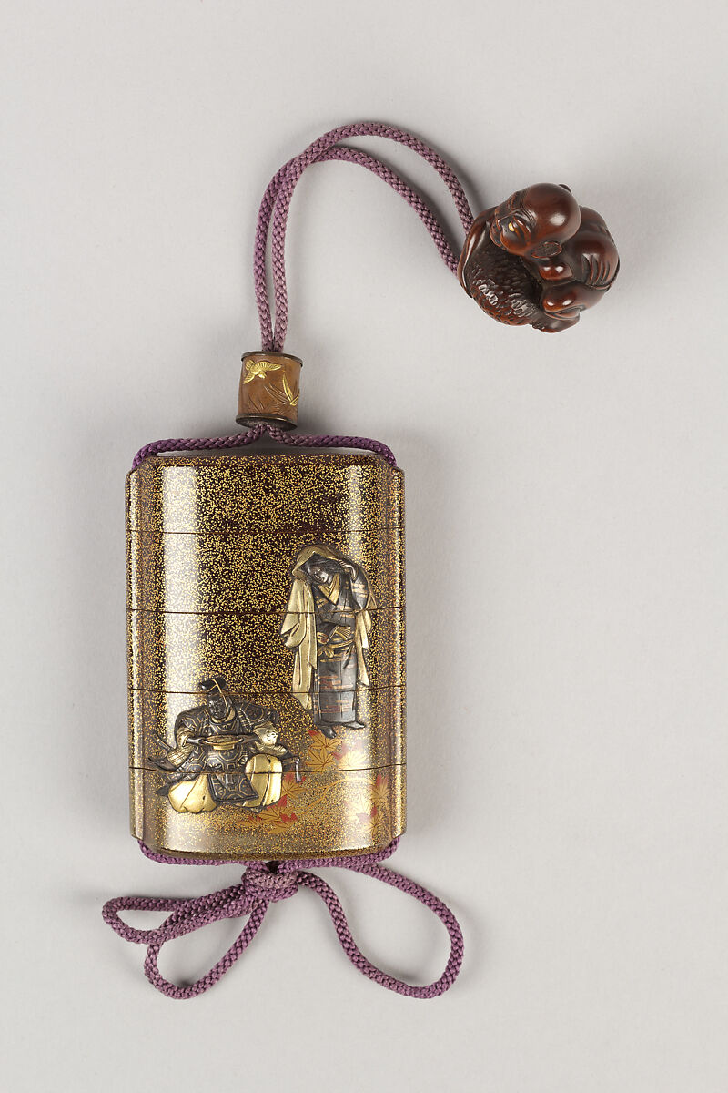 - Title: Case (Inrō) with Design of Seated Courtier Drinking Sake and a Young Woman with Maple Leaves