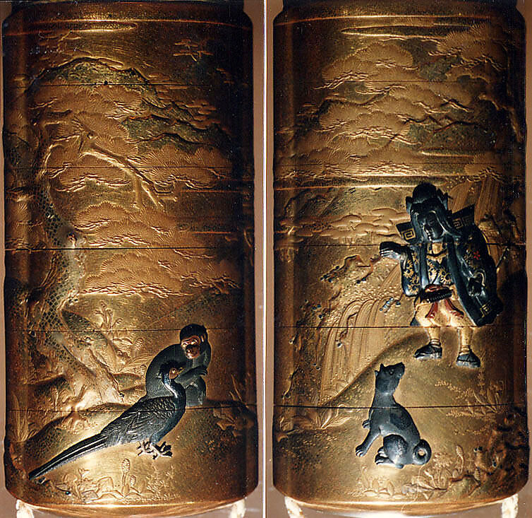 - Title: Case (Inrō) with Design of Momotarō and Dog on the way to the Island of the Devils (obverse); Monkey with Pheasant (reverse)