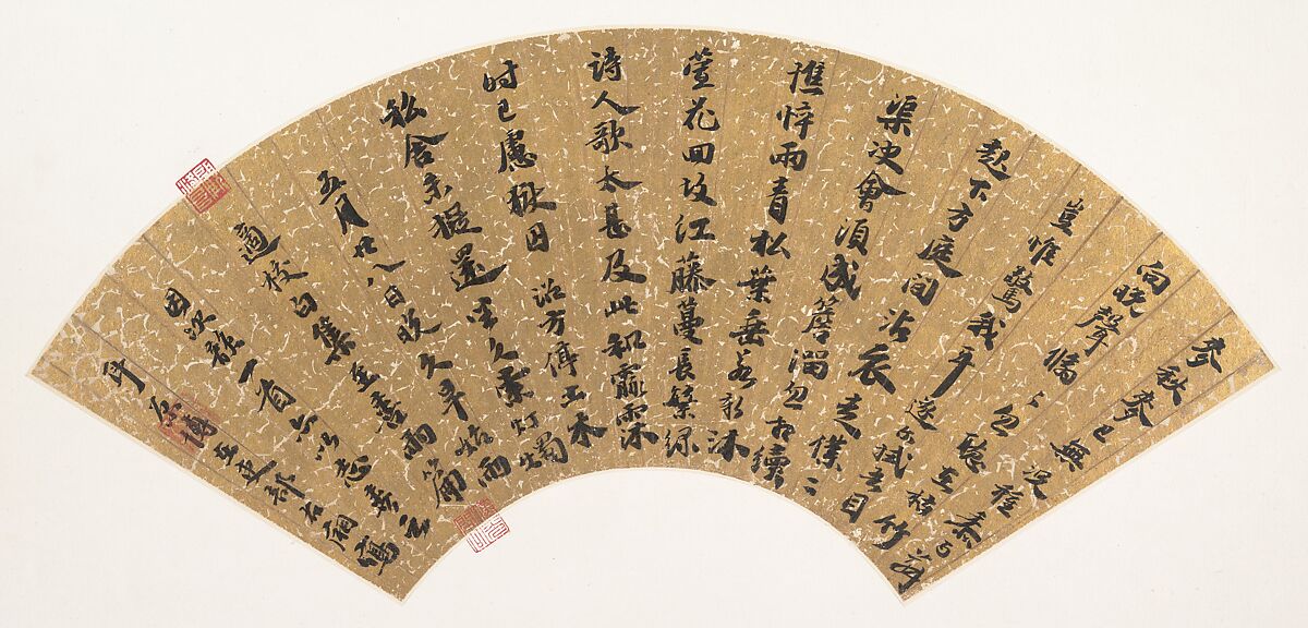 - Medium: Folding fan mounted as an album leaf; ink on gold-flecked paper