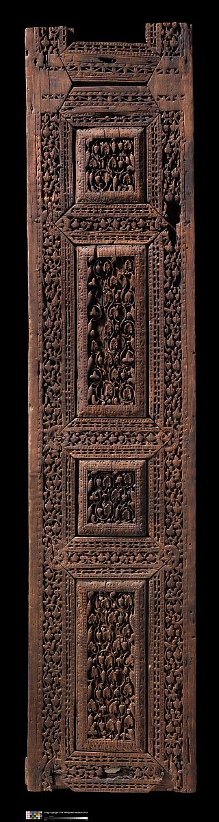 A nearly identical panel now in the Benaki Museum in Athens, also made of teak wood, suggests that they may have formed a two-paneled door. Imported to Iraq probably from South Asia, teak was highly prized in Abbasid monumental architecture of the eighth and ninth century. The value of such objects endured through time, and they were often reused for a variety of purposes in later centuries.