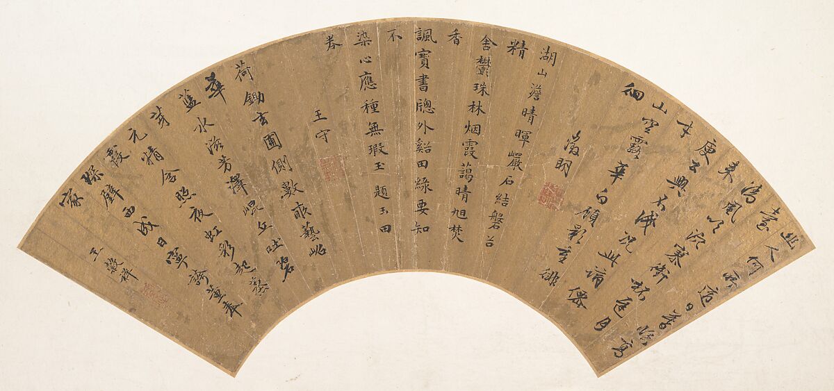 - Medium: Folding fan mounted as an album leaf; ink on gold-flecked paper