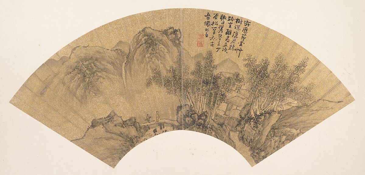 - Medium: Folding fan mounted as an album leaf; ink on gold paper