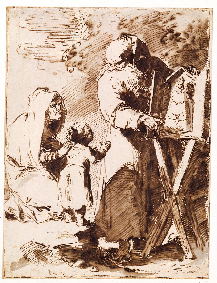 A Bearded Monk Showing a Portable Altar to a Praying Child, with an Old Woman Kneeling
