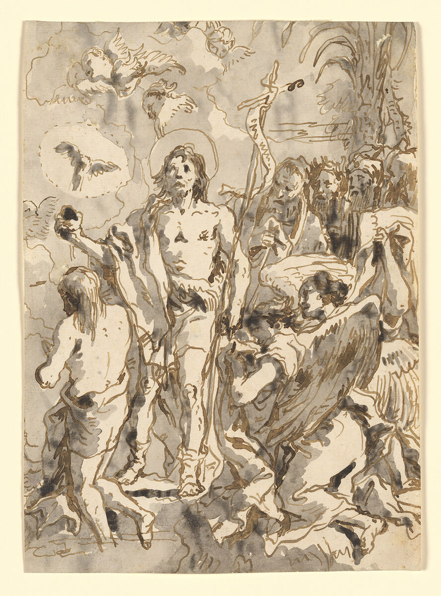 - Title: The Baptism of Christ (with Christ Half-Kneeling at Left, His Back Turned, and the Baptist Full-Faced at Center, Looking Up)
