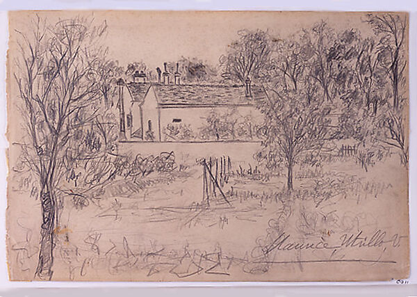 - Medium: Pencil on buff wove paper impressed with weave texture, left edge torn