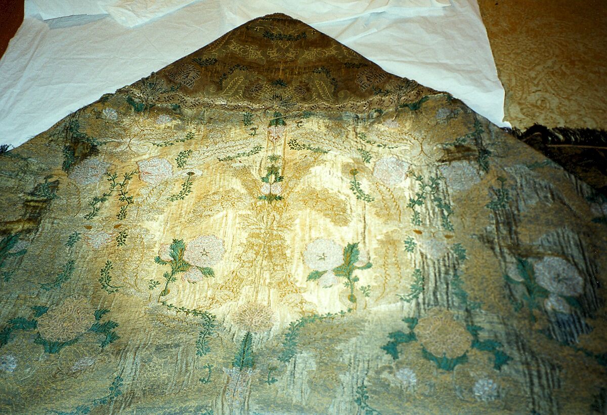 Hood (including fringe): 63 x 51 cm. - Classification: Textiles-Woven