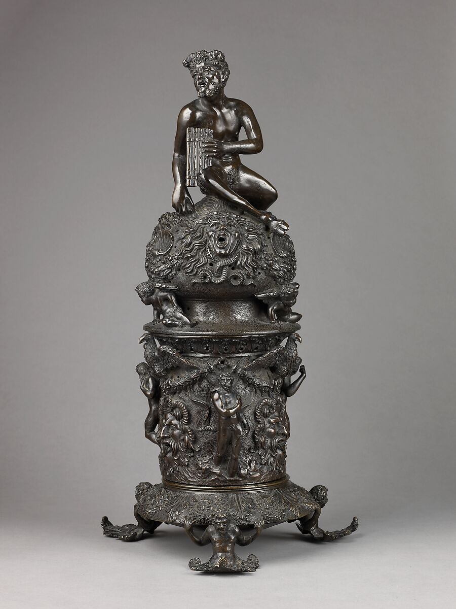 The fact that perfume burners of this model were inspired by Roman incense burners sometimes obscured their Renaissance origins. In 1719, the French antiquarian Bernard de Montfaucon illustrated this bronze in his influential book L'Antiquité expliquée et représentée en figures (Antiquity Explained and Represented in Figures). In the accompanying text, he identified it as a work from Roman antiquity and speculated that it might have been a cinerary urn.