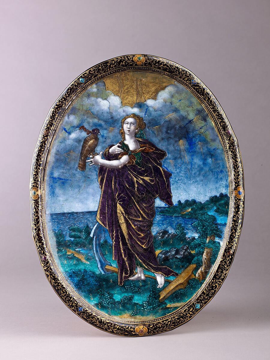 - Medium: Painted enamel, partly gilt, on copper.